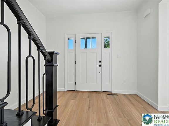Welcome to your dream home—freshly finished and perfectly placed in the quaint and quiet village of Hometown. This modern farmhouse was built with care and attention to detail, designed to offer all the charm of new construction without the usual hassles. From the moment you arrive, the incredible curb appeal sets the tone. A curved walkway, lined with fresh landscaping, leads you to a stunning exterior featuring board and batten siding accented by sleek black trim. The Craftsman-style front door invites you into a warm and welcoming foyer, where 9-foot ceilings and custom stair railings create an immediate sense of space and style. The spacious eat-in kitchen is a true showstopper—complete with quartz countertops, a walk-in pantry, tile backsplash, and island seating, it’s the perfect place for everyday meals or large gatherings. An available gas range hookup finishes off this beautiful kitchen. A designer powder room on the main level adds a touch of luxury with a stylish tile accent wall and premium finishes. Upstairs, you'll find three generously sized bedrooms, each with walk-in closets, plus a convenient laundry room and hall bath. The primary suite is a retreat of its own, featuring a luxurious en suite bath with dual vanities and a beautifully tiled walk-in shower. Step outside to enjoy the large, private yard, offering endless possibilities for entertaining, gardening, or simply relaxing under the open sky.