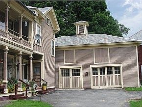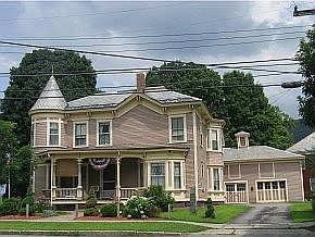 "THE ADAMS HOUSE" This stunning Victorian retains many original features such as gorgeous oak woodwork, wainscoting, wood flooring, 3 staircases, stained glass, 3 covered porches and an attached 2 story carriage house with original horse stalls. You will love the amazing details and workmanship throughout the interior of this historic home with a spacious foyer and curved staircase, a lovely marble fireplace, soapstone sink, beaded board and high ceilings. The updated kitchen is bright and has a wonderful walk in pantry, formal dining room, parlor, large 1st floor bedroom and bath and laundry room. There is an antique clock repair workshop and another kitchen with an old coal stove and pantry on 2nd floor and access from a second story stairway to the carriage house. Truly a treasure set on a pretty landscaped village lot.