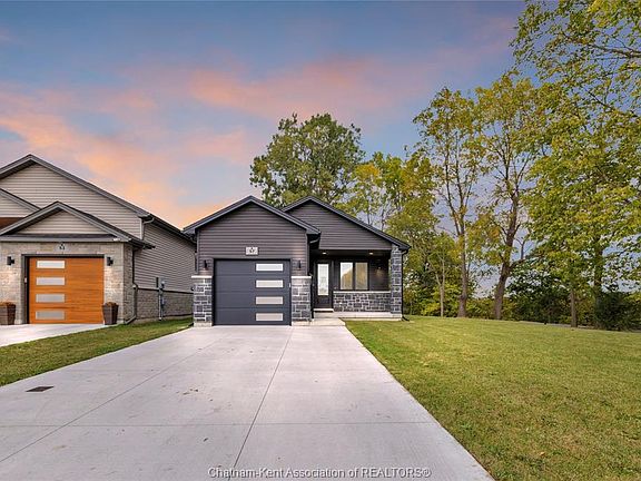 Tucked away in one of Chatham’s most sought-after neighbourhoods, 57 Baffin Way offers peace, privacy, and everyday convenience. Located on a quiet dead-end street with no side neighbours, this well-maintained newer build features modern finishes and vaulted ceilings throughout the main living areas. Offering three bedrooms and two bathrooms, including a three-piece primary ensuite and walk-in closet. The bright, open main floor flows from the living area to the dining space and kitchen, with newer appliances and double patio doors leading to a back and side yard partially bordered by natural landscape. The lower level includes a roughed-in bathroom and ample space for multiple bedrooms, a family room, or a potential granny suite. An attached 1.5-car garage, double concrete driveway, and additional parking at the end of the street provide plenty of space for residents and guests.