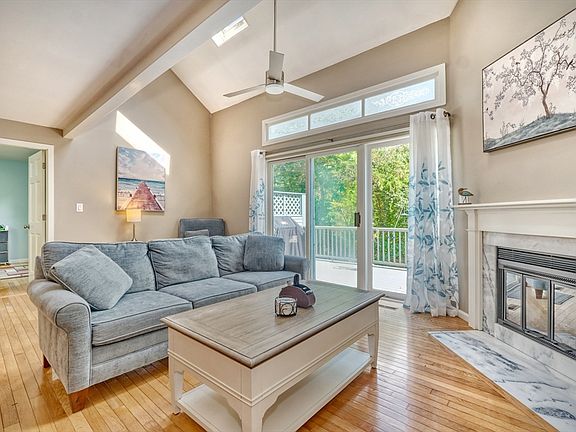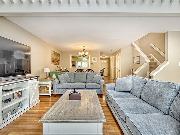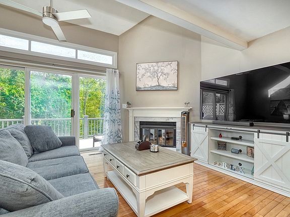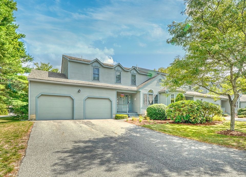 Meticulously maintained and lightly lived in townhome nestled on a quiet cut de sac in the desired Spruce Pond Village complex. Enter this end unit with great light and privacy via the generous foyer from either the front door or two car garage to the updated kitchen with eating area and pass through to the dining/living room beyond. The living room offers a gas fireplace, vaulted ceilings and slider to newer deck overlooking the private yard. An office or den plus half bath complete this level. The second floor has two bedrooms, including an ensuite primary with walk-in closet and laundry plus a second bedroom, another full bath and loft. The walkout basement has two finished, heated rooms and great storage. One year old heating and central air system, 2016 windows, many recent kitchen and lighting updates. Minutes to highway, shopping, train and schools!