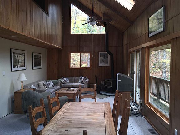 Tucked away in a quiet corner next to a babbling brook, this Saltbox style home has it all! Double lot, wrap around deck, open-concept full-length living/dining with vaulted ceiling and wood stove, 3 baths, 4 bedrooms, finished basement with walkout and interior stairs, mudroom, storage and solid rental history!