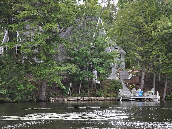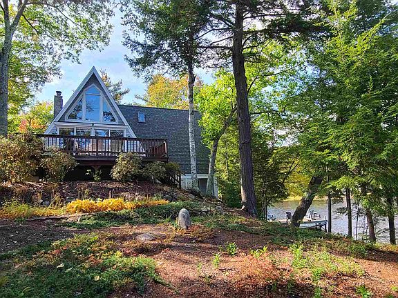 Magnificent double A-Frame home with over 3200 SF, beautifully situated on a peninsula with 450' of water frontage on highly desired, crystal clear Pine River Pond. This year-round Lakes Region home has been meticulously maintained and loved by the same family for 37 years. Truly a home with many special features: 2 master bedroom en-suites, 1st floor laundry, elevator/lift, cherry cabinets, granite counters, walk-in cedar closet, 3 decks, professional landscaping, 16'x12' dock, boat launch, irrigation system, oversized garage, expansive views and much more. There is a multi-purpose room currently being used as a nursery but could be an office, pantry or additional sleeping area. All of this is conveniently located in the quaint town of Wakefield and within close proximity to many popular activities: 20 minutes to Wolfeboro/Lake Winnipesaukee/Restaurants, 40 minutes to North Conway for skiing, hiking, shopping and an hour to the coast of Maine. Come see for yourself. Showings begin Saturday 10/10/2020 from 11AM-1PM at Open House. Due to Covid-19, we will be limiting the number of people inside the house at any one time & masks required.