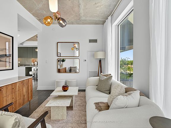 Welcome to this rare, light-filled corner suite in the coveted 57 Brock community. This spacious two-bedroom condo thoughtfully designed layout features a separate living room a true luxury in condo living with floor-to-ceiling wrap around windows its flushed with natural light and perfect for relaxing or entertaining. The kitchen and dining area open directly onto a private, oversized terrace that spans the length of the unit, offering a peaceful outdoor retreat complete with a gas BBQ hookup and water line for easy patio living.The modern eat-in kitchen features full-size appliances and dining nook. Both bedrooms are well-proportioned, with large windows and generous closet space while the primary easily accommodates a king size bed.Tucked into a quiet residential pocket of Roncesvalles and just moments from Queen West, King West, Liberty Village and Trinity Bellwoods Park, 57 Brock is a boutique, pet-friendly building with premium amenities including a co-working lounge, fitness studio, and rooftop terrace.With a Walk Score of 93 and Transit Score of 100, everything you need is just a short stroll away from parks and cafes to restaurants, schools, and shopping.A perfect blend of privacy, style, and convenience this one truly checks all the boxes.