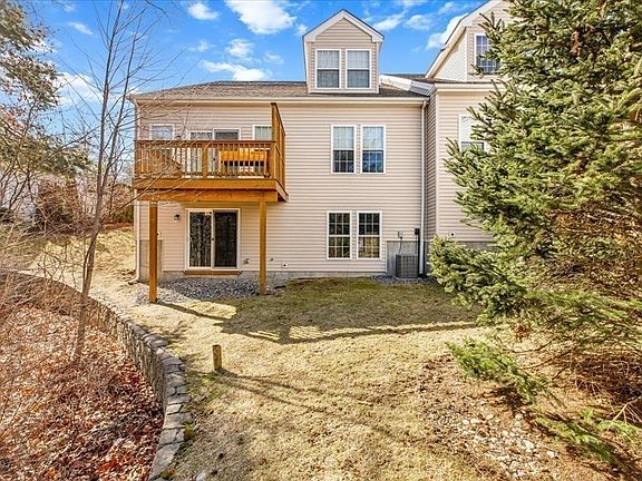 Luxury Canton Point End Unit Townhome with open floor plan. Dramatic 2 story foyer and 9 foot high ceilings throughout. Bright and spacious fireplaced living room with deck over looking Reservoir Pond and open to stunning dining room perfect for entertaining. Upgraded finishes in the kitchen with breakfast area, hardwood floors, stainless steel appliances and additional pantry storage. First floor main bedroom suite offers bath with large tiled shower and extended, custom walk in closet with built ins. Office/den, laundry and 1/2 bath complete the first floor. Oversized, lofted family room on 2nd floor with second private bedroom and full bath. Two car attached garage with ample storage. Large basement ready for finishing with high ceilings and walk out sliders to back. Convenient highway access. Private drive parking in addition to garage. Amazing 55+ living