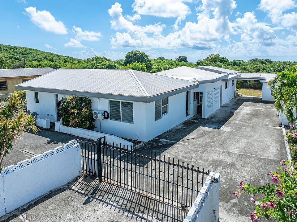 Nestled in the heart of the serene Catherine's Rest neighborhood in Company Quarter. Former childhood home of NBA legend Tim Duncan. Step into this quaint, FHA Approved, furnished and move-in ready home featuring three spacious bedrooms, a bonus room and two bathrooms. The main home stretches out over a 1274 sq ft single-level floor plan with a large open kitchen/dining area; adorned with updated stainless appliances, ample cabinet storage, efficient layout and a UV R/O home system. The attached 1192 sq ft apartment offers a one bedroom, one bathroom with a separate private entry and independent WAPA meter. Recent home updates: