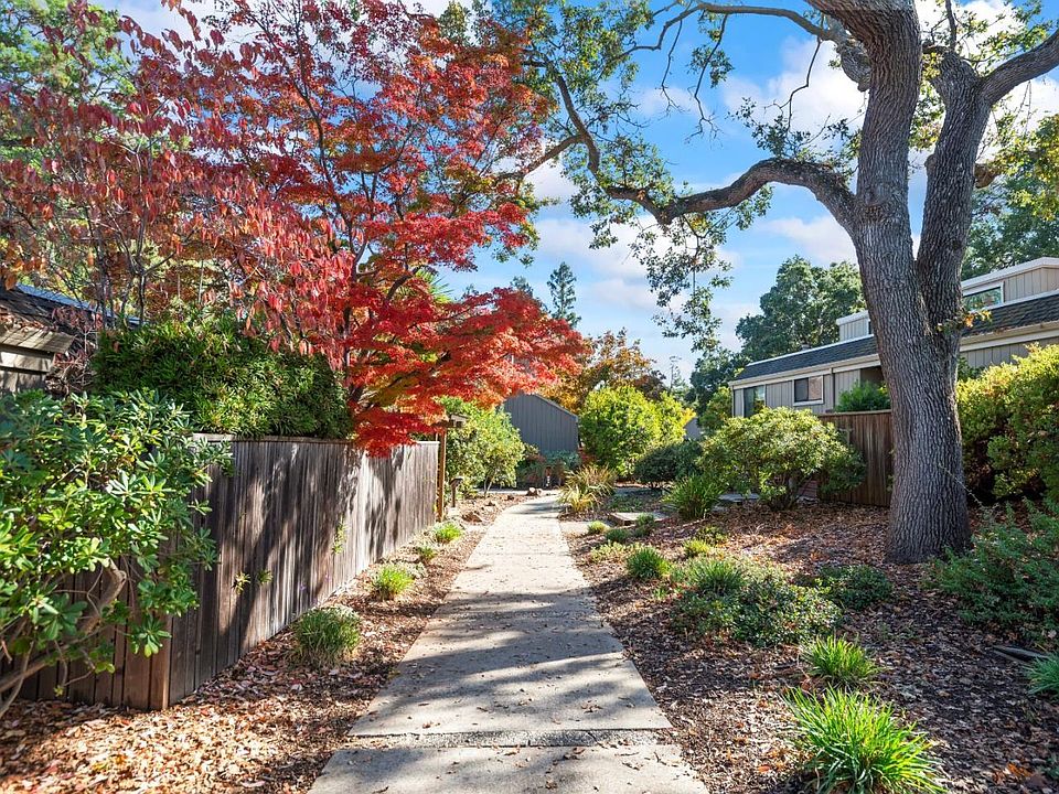 Welcome to this charming 2-bedroom, 2-bathroom home in the delightful city of Los Altos, located in the well-regarded Cupertino Union Elementary School District. Toyon Farm features a park-like setting with expansive greenbelts, a community clubhouse, and a pool, and is close to Rancho San Antonio Preserve. The home boasts vaulted ceilings throughout, filling the space with an abundance of natural light. Entertain on the spacious main deck. The kitchen is a chef's dream, featuring quartz countertops, a double oven, electric range, microwave, exhaust fan, hood over the range, pantry, and refrigerator making culinary tasks a breeze. The living spaces include a living room and dining area, both enhanced by high ceilings and hardwood flooring. Cozy up by the fireplace on cooler evenings and enjoy the comfort of central AC and forced-air heating. Relax in the tranquil setting of the master suite deck. Both bathrooms have been remodeled. Laundry tasks are easy with an in-unit washer and dryer. Enjoy shopping and dining in nearby downtown Los Altos, as well as Foothill Crossing, Rancho Shopping Center, Loyola Corners, and more. With easy access to highways 280 and 85. Don't miss out on this fantastic Los Altos gem! Open house Saturday 03/22, and Sunday 03/23