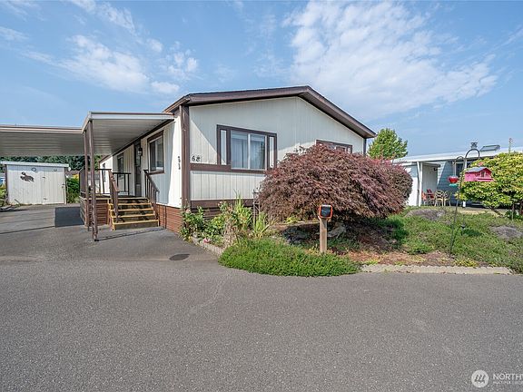 Located in a well-maintained Country Estates 55+ park, this home offers comfort and convenience. The living room features laminate flooring and an electric fireplace. The kitchen includes a dishwasher, range, and refrigerator, with a dedicated dining room nearby. One bedroom is carpeted, while the Primary Bedroom offers a walk-in closet, ¾ bath with vinyl flooring, and plush carpet. The utility room includes a washer/dryer (both stay) and a sink. Enjoy the covered side porch for outdoor relaxation. Heating and cooling systems plus a newer hot water heater provide year-round efficiency.