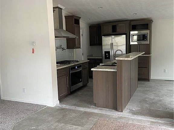 Brand new Titan Doublewide Manufactured home. Property features, open lay out, 2 full bedrooms, 1 den, and 2 full bathrooms. Kitchen has an area for stools, as well as a kitchen table, refrigerator, stove, microwave and dishwasher, bow window, central air, architectural shingled roof, and front porch. Laundry area ready for your full sized washer and dryer. Home is energy star rated for efficiency. Come take a look! Financing is available to those who qualify.