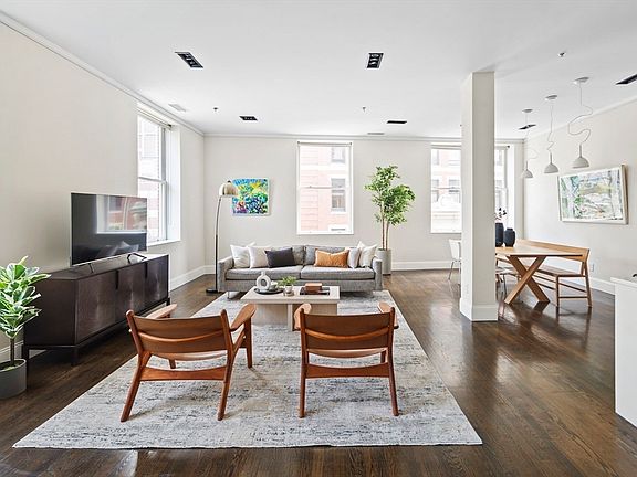 SHOWINGS BY APPOINTMENT—PLEASE REACH OUT! Wonderful loft-style home in a boutique South End building, with garage parking and elevator! This elegant corner unit has soaring ceilings, rich wood floors, and oversized windows that surround the central living area with natural light. The open floor plan is versatile and expansive, with ample room for living, dining, and working from home. Attractive cabinetry and countertops bring the kitchen to life, and the breakfast bar provides flexibility for dining and entertaining. Retreat to the serene primary bedroom where a huge walk-in closet affords you the opportunity to add a second full bathroom. The second bedroom or study has stylish sliding barn doors. Full bathroom with stackable washer/dryer and large linen closet. This professionally managed building is pet-friendly and boasts eight out of nine owner occupancy. Easy access to Tremont St with its great restaurants, SoWa Market, Whole Foods, and public transportation.
