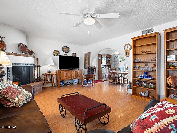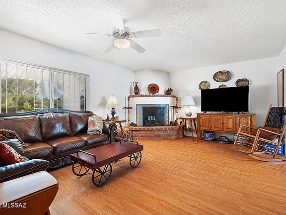 Beehive fireplaceU-shaped kitchenFront courtyardMajestic santa rita mountainsBack patioExtra-large skylightLaminate and tile flooring