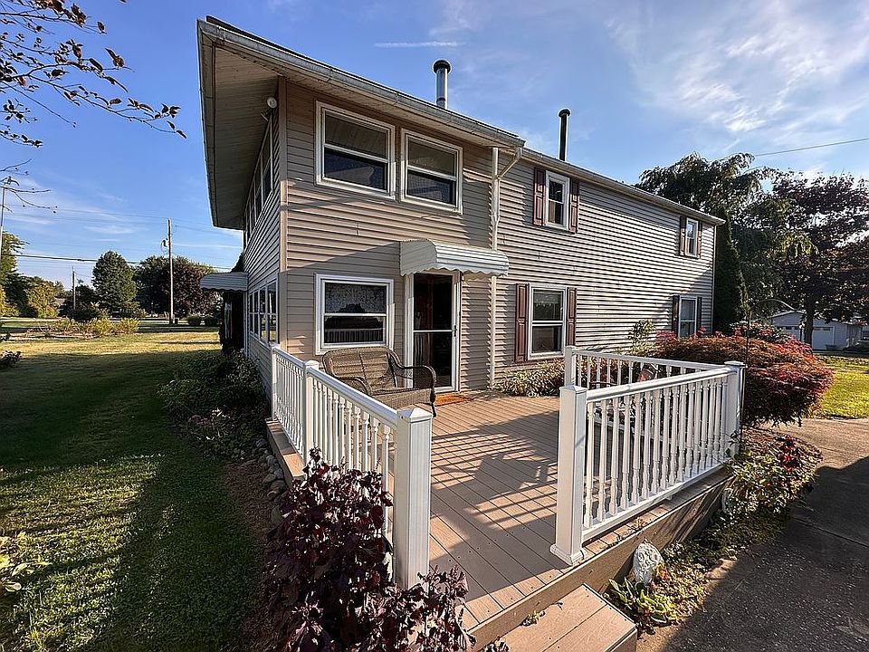 Two story home with vinyl siding. Stove, dishwasher, fridge, washer/dryer included. Forced air gas furnace. City water. Septic. Detached 2 car garage and concrete driveway. Voluntary HOA. 5 total lots included in price. Access to private permanent beach via Harrington Point Drive (maintained by the association).