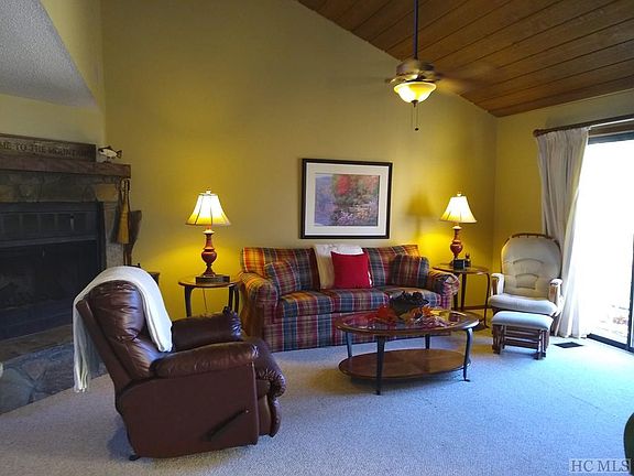 Conveniently located condo within walking distance to Fairfield Lake and just a few minutes' drive to Sapphire Valley amenities and Cashiers. Looking for a 'lock and leave' or rental income? Good rental history. Stainless appliances, granite counters and tile backsplash in kitchen, all tile baths, nice deck with mountain view for alfresco dining. Inside there is a wood-burning fireplace for the cooler evenings. Master downstairs with walk-in closet and locking storage room. Large master bath with jetted tub and a shower. Guest bedroom with adjoining full bath on main level. Nice neutral colors throughout. Rare near level entry condo with just four steps up to front door. Private cul de sac location.