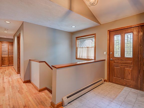 - Exterior features: Architecture Style: Ranch Rambler, Blinds, Cathedral Ceiling(s), Ceiling Fan(s), Circular Driveway, Deck, Dining Area, Driveway, Enclosed Porch, Flooring: Wood, Garage, Hearth, Heating system: Baseboard, Heating system: Hot Water, Heating: Oil, Heating: Wood, In Basement, Kitchen Island, Level, Lot Features: Level, Wooded, Neighborhood, Natural Light, Neighborhood, Paved, Primary BR w/ BA, Roof Type: Asphalt Shingle, Vaulted Ceiling(s), Wood Burning, Wooded