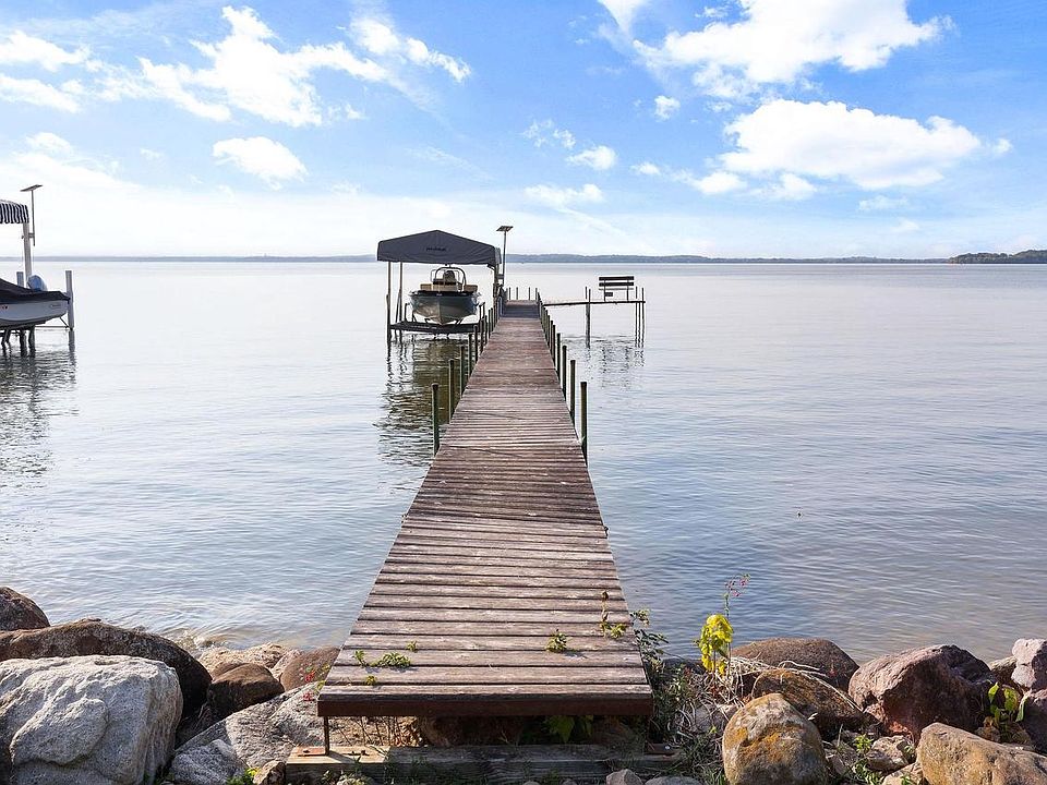 Mid-Century Lakefront Retreat with spectacular water views from nearly every room! This rare architectural gem sits on a gently sloping 0.63-acre lot leading straight to the lake. Features include striking architectural deck with panoramic views, two private ensuite bedrooms, walkout lower level with retro ?50s kitchenette for entertaining convenience. Live the lakefront dream?privacy, history, and beauty all in one. Additionally, the property includes MBCC privileges and is just minutes from downtown. Notes, there is a pedestrian easement to the lake for Fuller Woods neighbors; see associated documents for details. There are two bee hives on the property. Chemical free lawn.