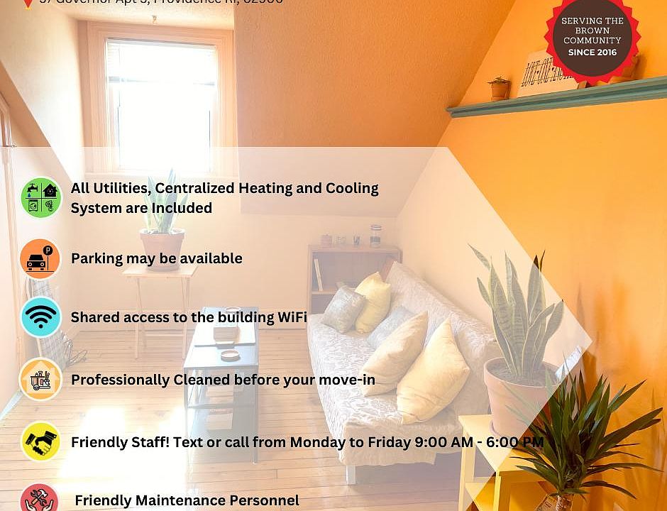 All utilities are included -Wi-Fi included (shared wifi) -Furnished -Steps to Brown Central heating & air-conditioning. FANTASTIC location, w/ outdoor space! Off-street parking available may be available. Dive into outdoor living with a fully fenced gravel patio, complete with tables, chairs, hammocks, BBQ grill, and outdoor WiFi! Shared with everyone in the building for relaxed outdoor vibes! The unit is a 3 bedroom 1 bath unit. Each room is a separate rental with all rooms sharing the common spaces such as the kitchen and Living Room. Can be rented as entire 3 bedroom apartment. Experience the best of Providence living at 57 Governor St Our location is unparalleled, with a multitude of amenities and attractions just steps away from your doorstep. World-Class Education Brown University, one of the top universities in the country, is just a 0.4-mile walk away. RISD, a renowned institution for art and design, is only a 1.0-mile stroll. Convenience at Your Fingertips Grocery shopping is a breeze with Whole Foods just 0.8 miles away. For a quick bite or a leisurely dinner, Tellulah Taqueria is just 0.1 miles from your front door. Trader Joe's is also within easy reach at 0.6 miles. Dining and Nightlife For a taste of the city's vibrant food scene, Chomp Kitchen and Drink is just 0.1 miles away. The East End, known for its eclectic shops and eateries, is only 0.4 miles from our doorstep. And for Italian cuisine lovers, Pasta Beach is just 0.7 miles away. Don't miss out on the opportunity to live in the heart of Providence's action! Contact us today to schedule a viewing and make 57 Governor St your new home. No pets allowed. No smoking allowed in or around the property. Email or call for more photos of all spaces in the apartment and to check availability for your specific move in dates. ALL UTILITIES INCLUDED! :)