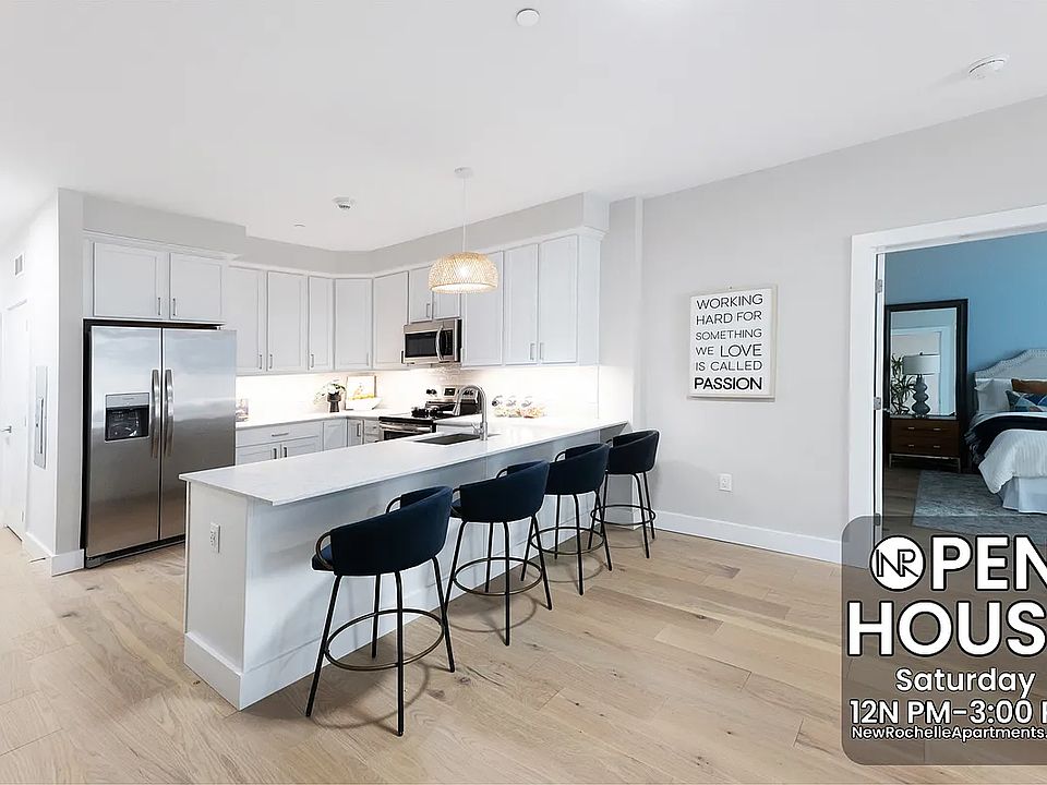 Rent includes a full suite of amenities including a state-of-the-art fitness center, lobby & rooftop lounges, a business center, a storage facility & multiple charging stations. The amenity package also extends to New Rochelle's beautiful waterfront. Tenants become instant members to the VIP Country Club where they enjoy access to the club's private cabanas, a pool, beach, cafe, bar, volleyball, kayaks, tennis courts, bbq stations and organized events.