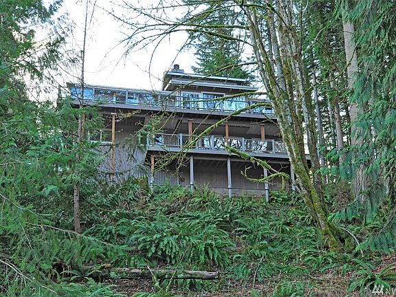 Private Setting Craftsman Style: vaulted ceilings and hardwood floors. 4 bedroom, 2.5 bath home with partial lake, mountain and territorial views. Master bedroom on main floor with tiled bath and large soaking tub, indoor sauna, two fireplaces, two large trex decks and media/family room with bar. Very private location which backs up to The Firs (500+ acres of woods).