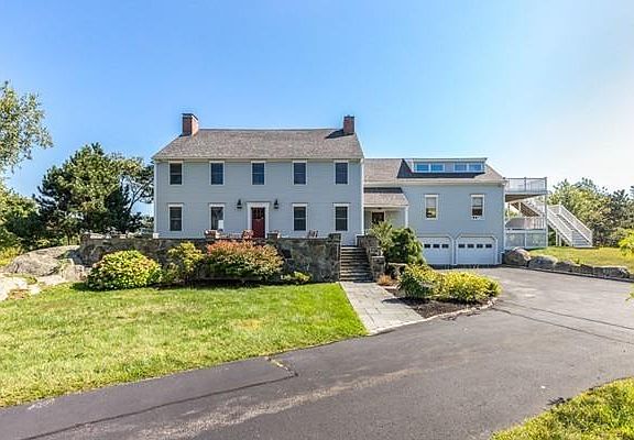 Walk to the Atlantic Ocean and Gloucester’s fabled Bass Rocks from this spacious and gracious 5 bedroom mini estate on almost 2 acres. Elegance, privacy, versatility and water views! Tennis court! Slate patio, formal foyer with artist painted waterfront scene gracing the staircase wall. Double living rooms w/fireplaces, family room, sun porch, formal dining room, kitchen, wraparound deck, apt w/separate entrance, game room, full walkout cellar, central a/c, 2 car garage. Au paire suite and more!