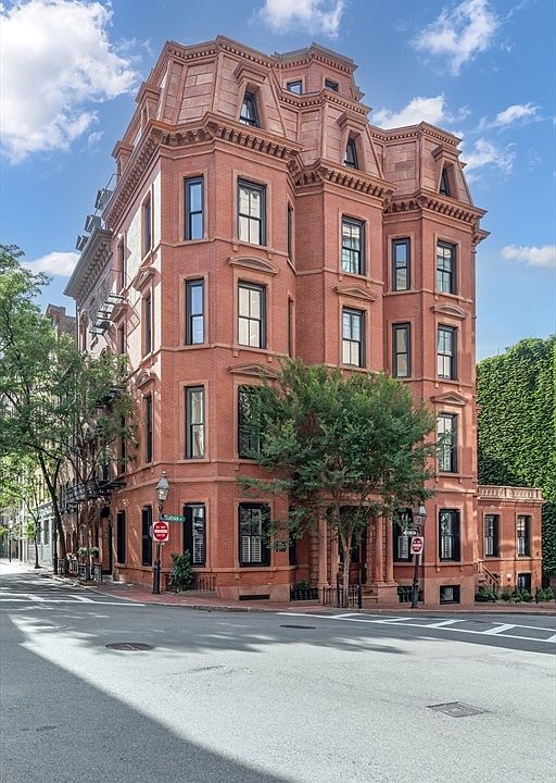 Grand iconic corner building has just undergone a complete restoration into one of the finest single family homes on Beacon Hill. An extremely rare corner home has stood in this location since 1870 and still posses the papyrus capitals on the entryway columns to mark the style. This sun filled corner property maintains three exposures, 65 windows, ceiling heights ranging from 9-11 to 11-7, three roof decks, courtyard and a sweeping top to bottom staircase that begins in a grand entryway and ends at a dramatic 8 window cupola that truly must be seen. This tremendous home offers substantial curb appeal, three magnificent bays, gracious rooms and architectural detail. Property amenities include elevator, two wet bars, three gas fireplaces, entertainment club level with roof deck, three laundries, top floor media room, three parking spaces, and much more. Spectacular opportunity in one of Boston's most historic and desirable neighborhoods.
