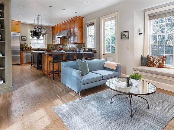 Circa 1914~Extensively updated while blending original craftsmanship, this 5-plus bedroom residence has been beautifully designed to maximize natural light & outdoor spaces. The main level features floor-to-ceiling windows & access to the terrace w/wisteria covered pergola from every room. The kitchen w/8 burner Viking stove, honed granite countertops, island w/copper counter, & butler's pantry, is divided by breakfast bar to family room w/gas fireplace. The living & dining rooms both w/beamed ceilings & fireplaces, & study w/fireplace, offer French doors to the yard. The primary bedroom suite is an oasis w/gas fireplace, walk-in closet, spa-like bath w/steam shower, radiant floors & roof deck. The 2nd level includes 4 more bedrooms, 2 w/lofts, 2 bathrooms, & study w/vaulted ceiling & access to deck. The LL has a family room, guest room, gym, full bath, & laundry. 2024 Viessmann heating system & garage w/EV station. just blocks away from schools, parks, the “T”, & Brookline Reservoir.