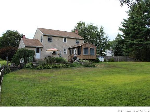 This 4 Bedroom Colonial home set in a park like setting in a friendly neighborhood and convenient to Rt 44. Fenced yard with beautiful landscaping, stone walls and sun room overlooking the yard and patio. Perfect for entertaining or just relaxing with the family. Enjoy the large family room with gas fireplace, eatin kitchen, Dining room with built in hutch and large living room with additional Fireplace - Hardwood floors throughout. Newer windows, siding and roof. Heated garage and walkout LL.
