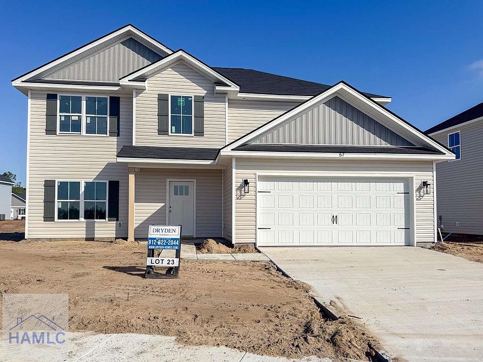 William 2 plan in Boundary Hall! Convenient location on the edge of Liberty County, just minutes to Hinesville, Ludowici & Ft. Stewart. Step inside the William 2 & take in the two-story foyer with a staircase! A formal living room sits just off the foyer with access to the formal dining room. Continuing further into the home, the kitchen features quartz counters & a comfortable breakfast area. Access to the patio from the breakfast area, too! The family room is located just off the kitchen with a fireplace. Plank flooring throughout first floor common areas! Upstairs, find 3 bedrooms, a laundry room, a hall bath & the primary suite. A vaulted ceiling greets you in the primary suite, along with a private bath with soaking tub, separate shower, dual vanity & walk-in closet. Quartz vanity counters in both full baths! Estimated completion December 2025.