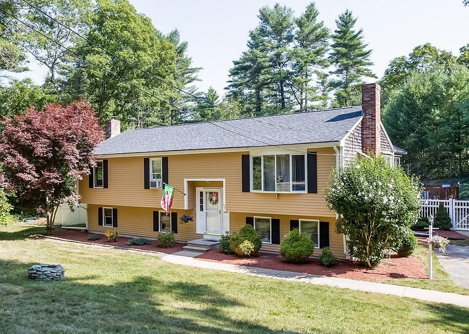 Welcome Home! This lovely Lakeville raised ranch is move-in ready with open concept living area and a bonus 4 season sunroom with skylights, vaulted ceiling and charming built-in window seat! Freshly stained expansive deck leads you to your patio with fire pit area, as well as above ground pool with an additional deck! This family friendly home has great entertaining space as well! Lower level boasts a large family room with fireplace and an updated full bathroom. The lower level has a walk out to back yard patio. Near great school system, trails and proximity to hwy. Don't miss this one, it will not last!!