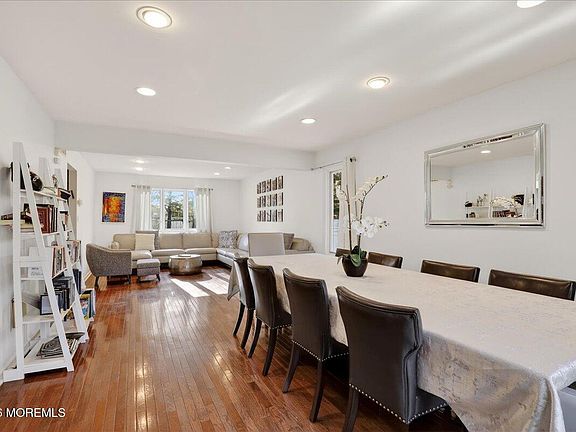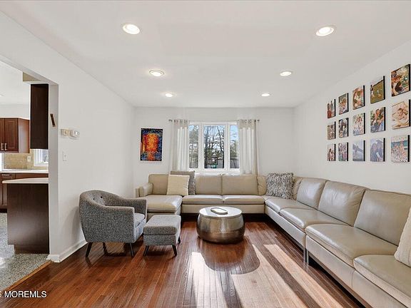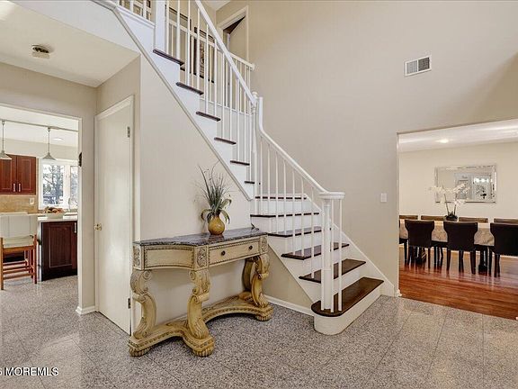 Beautiful colonial home for sale in Eatontown! This home has a great flow with a large eat in kitchen with quartz counters, granite floors and center island. There are stainless steel appliances, wood cabinetry and great bar area. Sliding glass doors lead to large wood deck and huge rear yard. Spacious living room and dining room with hard wood floors off of the grand entranceway. Comfortable den with fireplace off the kitchen. Upstairs Includes 4 bedrooms and ample closet space. Sunlit primary suite with walk in closet and ensuite bathroom with tub and shower. Large finished basement with high ceilings. 2 car garage with convenient laundry room with storage leading into the home. Unlimited possibilities! Must see!