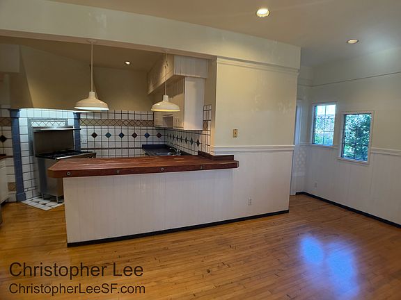 -Chef-Inspired Kitchen Outfitted with a restaurant-grade stove, wood countertops, and plenty of cabinet storage perfect for anyone who loves to cook.