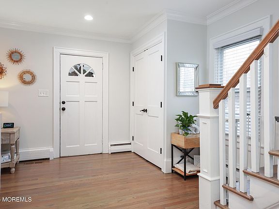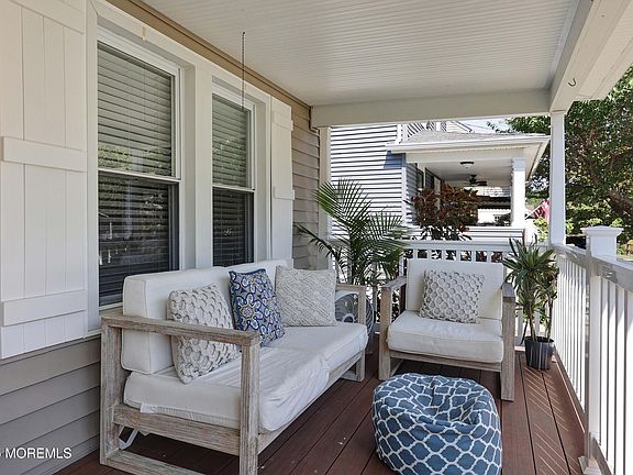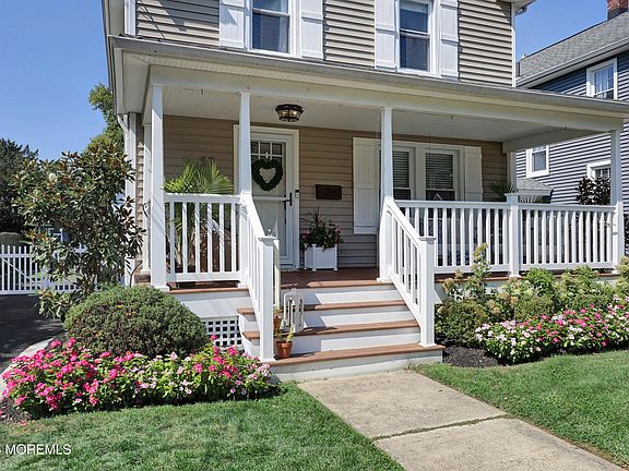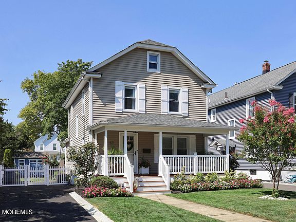 WELCOME HOME to this beautifully updated Colonial in the heart of Red Bank, where timeless charm meets modern comfort. This 3-bedroom, 2-bath home features a classic covered front porch perfect for morning coffee or evening relaxation. An inviting interior with gleaming hardwood floors, detailed crown moldings, and an open, airy layout ideal for both everyday living and entertaining. The kitchen is a showstopper with a shiplap ceiling, stainless steel appliances, custom hood over the five-burner range, spacious center island that seats five, and elegant quartzite countertops complemented by a farmhouse sink. Bathrooms are tastefully renovated, and the home is enhanced with recessed lighting. Central air for year-round comfort. Step outside to your private backyard oasis, complete with a brand-new Trex deck, lush new landscaping. Versatile shed ideal for creative retreat, home office or studio. Located just minutes from Red Bank's vibrant downtown, shops, parks, and the river.
