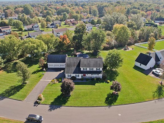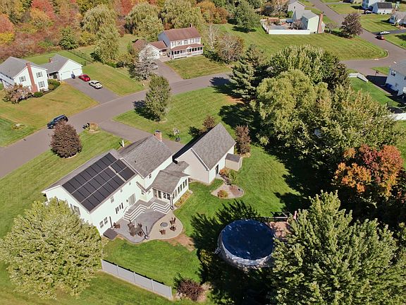 Showstopper in Suffield! Located in one of Suffield's most desirable neighborhoods, this stunning Briarwood-built 4-bedroom, 3.1-bath home has it all! Featuring two primary suites and two additional bedrooms, it's ideal for extended family or guests. You'll love the open, remodeled layout with beautiful high end laminate floors throughout, a cozy den with a pellet stove insert, and sliders that lead to a bright four-season room - perfect for relaxing year-round. The updated kitchen with eat-in dining flows effortlessly into the modern dining room and comfortable living room, creating a great space for everyday living and entertaining. Energy efficiency shines here with affordable solar panels, 200-amp service, and a high-performance indirect fired water heater that delivers up to 180 gallons per hour at 95% efficiency. Outside, enjoy custom concrete walkways, a beautifully landscaped yard, an above-ground pool with deck, and an amazing 5-car garage with potential for a bonus space above. This home checks every box - style, comfort, and location. Don't miss your chance to own this Suffield gem!