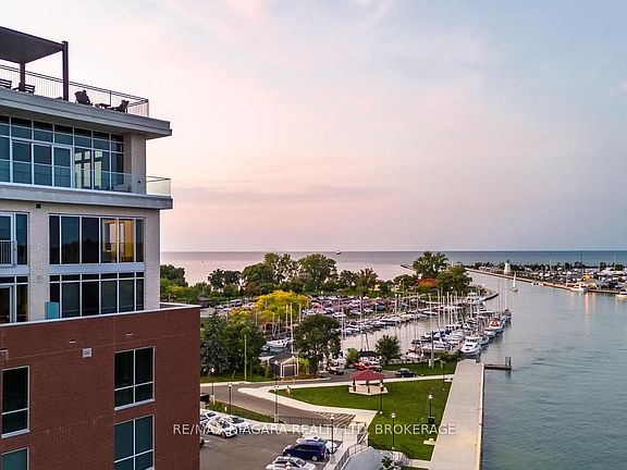 Welcome to 57 Lakeport Rd, Unit #302, an exquisite residence in the highly desirable Port Dalhousie. Known for its serene waterfront lifestyle, this boutique building offers a perfect mix of luxury and tranquility. Surrounded by breathtaking views, fine dining, scenic parks, the marina, and the newly rebuilt pier, it showcases the best of Niagara. This spacious 2 bedroom & 2 Bathroom unit features premium upgrades and an open-concept design. Floor-to-ceiling windows provide natural light and stunning panoramic views of Lake Ontario. The kitchen is a chefs dream with quartz countertops, a gas stove, custom cabinetry, and a built-in coffee and wine bar with hidden storage. The living area offers remote-controlled blinds for seamless light control. The primary bedroom serves as a retreat with a feature wall, walk-in closet, and private balcony. The ensuite bathroom boasts high-end tiles, a quartz vanity, and heated floors. A second bedroom is ideal for guests or a home office, with a second full bathroom offering the same elegant finishes. The laundry area includes quartz countertops for added convenience and a polished look. Amenities include a rooftop terrace with 360-degree views of Lake Ontario, the Toronto skyline, and the Niagara Escarpment. With two deluxe BBQs, a gas fire pit, and ample seating, its perfect for entertaining or relaxation. Additional features include bike racks, a dog wash station, and TWO owned parking spots in the underground garage. Cutting-edge smart home technology lets you control climate, lighting, and door access remotely. Conveniently located near the QEW and 406 highways, you're minutes from Niagara's wine country, Niagara Falls, and Buffalo Airport. Whether you're enjoying your morning coffee with serene lake views, strolling along the waterfront, or exploring vibrant local cafes, this home offers a lifestyle of comfort and luxury.40k in Upgrades!