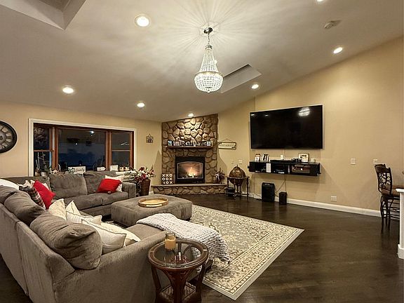 - First Floor Bedroom, First Floor Full Bath, Cathedral Ceiling(s), Chandelier, Eat-in Kitchen, Kitchen Island, Primary Bathroom, Master Downstairs, Stone Counters