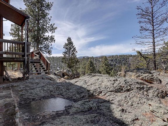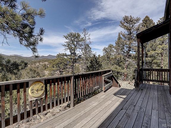Enjoy awe-inspiring mountain views as your daily backdrop in this desirable location in Bailey! This is a rare opportunity to own an exceptional custom-built 3 bedroom, 3 bathroom, 2332 sq ft home on 3-plus private acres in Burland Ranchettes. With plenty of flexible space, including upper-level office & loft, you have the canvas to craft your vision of the perfect mountain retreat. On the main floor, in addition to the walk-out deck, there is an open living room with Beetle kill wood accent walls, a floor to ceiling stone fireplace plus a bedroom, full bath, and laundry room plus the kitchen and 2 dining areas. Upstairs, there is the large Primary suite with Ensuite 5-piece bathroom and another bedroom and full bath. You will find plentiful storage closets throughout the home including storage under the stairs and an oversized, extra tall, 2 car garage with built-in shelving. Don’t miss the generous crawl space storage area. Ample flat parking on this sunny lot. Savor the must-see panoramic mountain views of Mt. Rosalie and the sounds of Deer Creek below or revel in morning sunrises from your piece of mountain paradise just waiting for your personal touches. Some updates include a new roof in 2021, Pergo flooring, and a pellet stove. Just minutes to Hwy 285 access—the Gateway to many Rocky Mountain resorts and recreational areas. Schedule your tour today and experience all that this home has to offer! For more information, 3D Tour, and photos, please visit: https://cvt.hd.pics/57-Long-Ridge-Dr