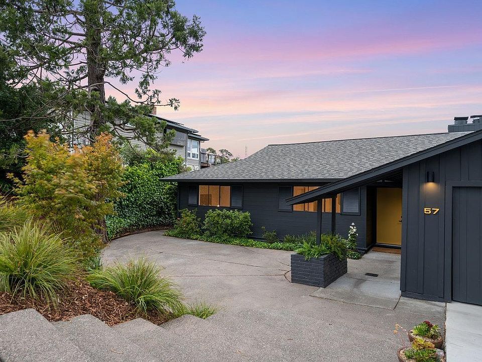 Located in Mill Valley's very desirable Enchanted Knolls neighborhood, this updated, refreshed and sun-filled Mid-Century Ranch - with a pool! - is the perfect blend of modern amenities and timeless charm. A fantastic layout and a flexible floor plan with entrance on the main level includes a kitchen, an expansive living room-dining room combo with wood burning fireplace, a nice deck, 3 bedrooms, and 2 baths. The lower level boasts an impressive and inviting family room with additional fireplace, a 4th bedroom, a 1/2 bath, and a large laundry/office. The flexible layout downstairs allows for entertaining and fun-filled pool parties. Quality updates include Heath tile, Fisher & Paykel appliances as well as renovated mahogany paneling. New roof, main electric panel, oak flooring, paint and many other updates. Wonderful location close to Hauke Park, transportation, shopping, and the highly rated Mill Valley Schools.