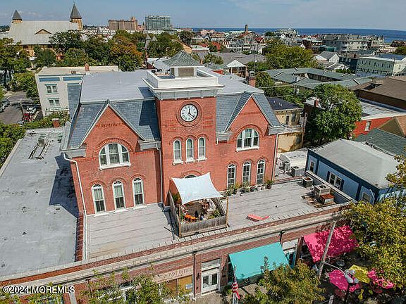 Welcome to the perfect year round home or summer getaway in this stunning one bedroom, one bath top-floor condo East facing with ocean views from all windows in the recently restored historic Landmark Building in the heart of Ocean Grove. This elevator building offers a shared rooftop deck for outdoor entertaining. Large living room with exposed brick, soaring cathedral ceiling and huge arched windows. Lots of closet space! Dining room with exposed brick wall. The kitchen features elegant granite counters and modern appliances. A spiral staircase takes you to the bonus room/office/closet AND primary bedroom where you'll enjoy more ocean views! Locked storage in basement & bike storage area. Just a few blocks from the boardwalk/beach and close to Asbury Park. Can be delivered turnkey!