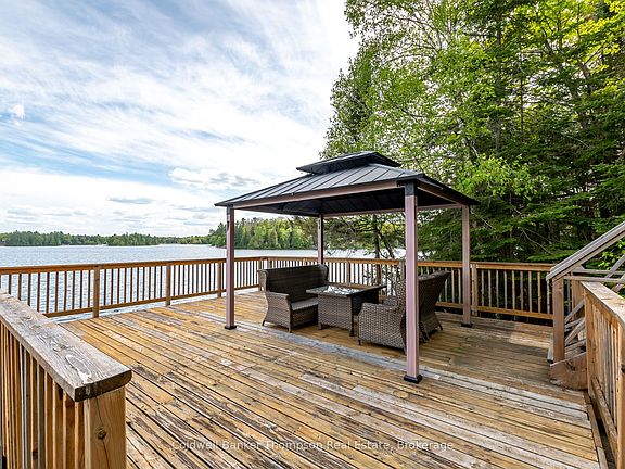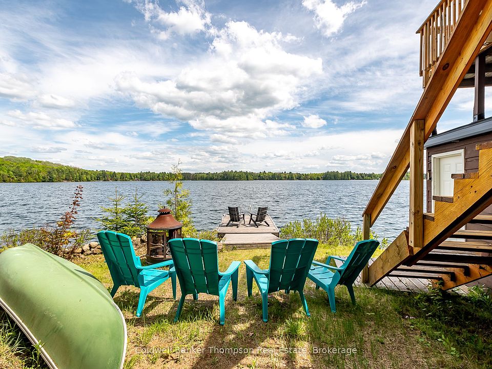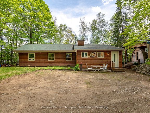 Escape to the timeless charm of cottage life with this 4-bedroom, 4-season bungalow on the clear, sparkling shores of Clear Lake. Set off a year-round, privately maintained road, the tree-canopied driveway sets a peaceful tone as you arrive at this inviting lakeside retreat with ample parking for family and friends. Inside, a spacious foyer welcomes you into a thoughtfully updated interior. The large eat-in kitchen features modern finishes and cozy in-floor heat, ideal for gathering over morning coffee or evening meals. A generous living room offers views of the water, perfect for curling up with a book or enjoying time together after a day outdoors. The updated 4-piece bathroom also features in-floor heating, and four cozy bedrooms provide restful spaces for both family and guests. A laundry/utility room combo adds convenience for longer stays or year-round use. Outside, the level portion of the lot is ideal for lawn games, kids playing, or simply relaxing in nature. Down a few stairs, a small greenhouse offers a space for gardening or quiet reflection. A few more steps lead to a sun deck above the single-slip boat house, perfect for lounging with a drink or soaking up the all-day southern exposure. Just below, the dock offers easy access to the crystal-clear water for swimming, paddling, or casting a line. In the winter, enjoy direct access to the snowmobile trail that runs across the lake, offering a whole new season of fun and adventure.This property is designed for memory-making: sauna sessions after a swim, late-night stargazing, fireside chats, and the simple pleasures of life at the lake. Features include a forced air propane furnace, central air, hot water on demand, a drilled well, and a Generac generator. A nearby public boat launch makes it easy to get your boat in the water, and Novar is just a quick drive for gas, groceries, and the LCBO. If you're looking for a peaceful getaway, this Clear Lake gem offers the lifestyle you've been dreaming of.