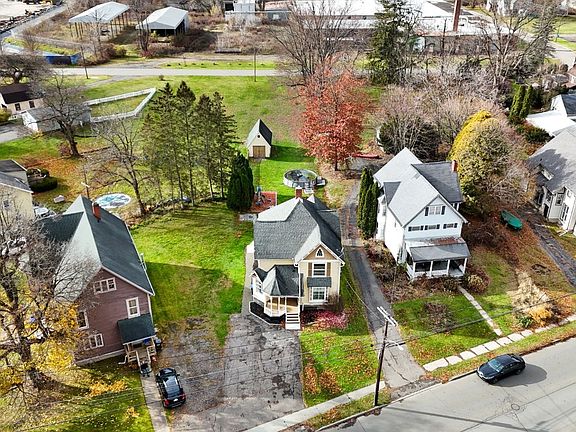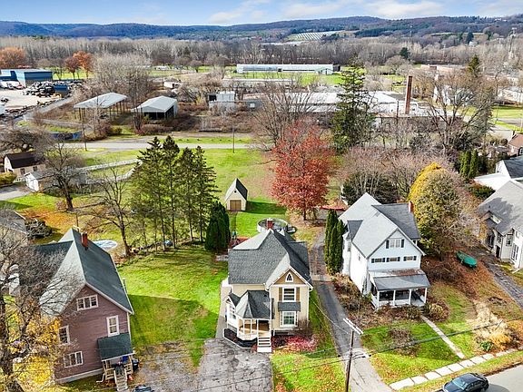 You will love this inviting 2-story home nestled in Owego's historic village. This residence blends timeless character with thoughtful updates. The first floor features a welcoming foyer, living room with built-in bookshelves and hidden storage, and an electric fireplace for cozy evenings. A spacious kitchen boasts a central island, pantry and newer dishwasher, while the convenient first floor laundry with newer washer and dryer includes the half bath. Upstairs, one of the bedrooms has a hidden Murphy bed for flexible use of space, while two of the bedrooms have walk-in closets. Stairway to the walk-up attic is through the bonus room. There is an abundance of natural lighting. Outdoors, enjoy a yard that stretches to Stakmore Lane with room to gather around the fire pit, take a swim in the above ground pool, or play on the swingset. A stone pad behind the large shed offers space for a large trailer. This home combines historic charm and modern updates.