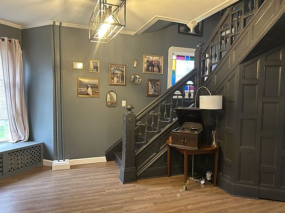 You will love this inviting 2-story home built in 1885 and nestled in Owego's historic village. This residence blends timeless character with thoughtful updates. The first floor features a welcoming foyer, living room with built-in bookshelves and hidden storage, and an electric fireplace for cozy evenings. A spacious kitchen boasts a central island, pantry and newer dishwasher, while the convenient first floor laundry with newer washer and dryer includes the half bath. Upstairs, one of the bedrooms has a hidden Murphy bed for flexible use of space, while two of the bedrooms have walk-in closets. Stairway to the walk-up attic is through the bonus room. There is an abundance of natural lighting. Outdoors, enjoy a yard that stretches to Stakmore Lane with room to gather around the fire pit, take a swim in the above ground pool, or play on the swingset. A stone pad behind the large shed offers space for a large trailer. This home combines historic charm and modern updates.