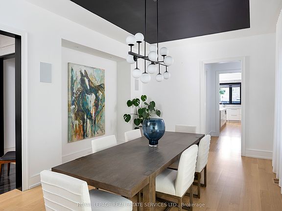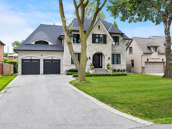 Nestled in one of West Toronto's most sought-after communities, this masterfully custom-crafted estate features 5 bedrooms, 7 bathrooms, and over 6,000 square feet of bespoke living space. As you step through the front entrance, you are welcomed by a grand foyer with seemingly endless sightlines extending through to the backyard, setting the tone for the luxurious experience that awaits. At the heart of the main level lies an incredible kitchen with custom cabinetry, premium Thermador appliances, and a family-sized island. Adjacent to the kitchen, the butler's pantry leads you to the grand dining room, perfect for entertaining. The open-plan kitchen and living area boasts a feature wall with a TV niche, linear gas fireplace, and built-in storage, creating a warm and inviting space for gatherings. Step through the rear garden doors and prepare to be enchanted by the meticulously designed backyard. This outdoor oasis offers multiple areas for al fresco dining, a relaxing retreat by the outdoor fireplace under a custom pergola, and ample space to bask in the sun amidst professionally manicured gardens. It is truly an oasis inspired by luxury hotel gardens. The master suite, located at the rear of the home, features striking vaulted ceilings, a chic 5-piece bathroom, a dressing room, a shoe closet, and a built-in vanity area. The spacious 2nd and 3rd bedrooms share an ensuite bath with a double vanity and separate water closet, while the 4th and 5th bedrooms offer private ensuites, ideal for guests or separate living quarters. The expansive lower level features an open-concept theatre and games room with a 100-inch screen and a 7.1 built-in sound system. Additionally, you'll find a spa-inspired full bathroom, bedroom or den, ample storage areas, laundry room, and a fully equipped mirrored gym/yoga studio. Discover the epitome of luxury living where every detail is designed for comfort, elegance, and style.