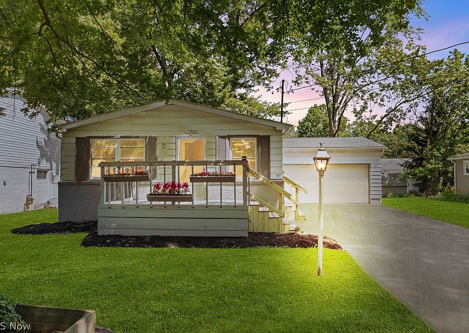 Welcome to this charming three bedroom, one an half bathroom ranch! Walking up to the home you have curb appeal with the planters and fresh landscaping and flower beds! New steps on front and side door porch done in 2024, from deck was extended in 2022. Roof and gutters were 2016, floating deck with pergola done in 2018, new main bathroom remodel 2024, new LVT flooring throughout in 2024, 2020 new basement floor, boiler serviced in 2022, windows were done in 2013, master bathroom converted from garage entryway to bathroom in 2013, HWT about 2007, new garage door off back 2024! With all these fresh updates you walk into the sidedoor into the kitchen with all appliances convey, buffet and corner table also convey if desired. New countertop and sink in 2024. Walk around the front into the living room, down the hall you'll find three bedrooms the first bedroom on the left blue couch conveys, a full bathroom and in the master bedroom a half bath! Make your way into the basement and you will find a spacious entertainment area with newer flooring! Laundry room is off the right of the stairs. Outside in the back you will enjoy summer nights or morning coffee with the floating patio with pergola. Don't miss out the opportunity to own this updated ranch in Howland schools today!