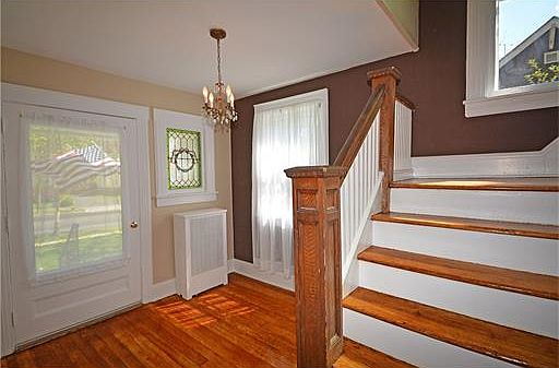 Beautiful, spacious 4 BR home with 2 full baths and large 2 car garage on a corner lot. Recently renovated with wood floors, large windows, stained glass features and welcoming entrance with spindled staircase. A large wrap-around porch provides classic charm to this stately colonial home. An unfinished attic offers endless potential, and the home has a fenced-in yard. Close to transportation and shopping, this home is a fantastic buy for the money!.