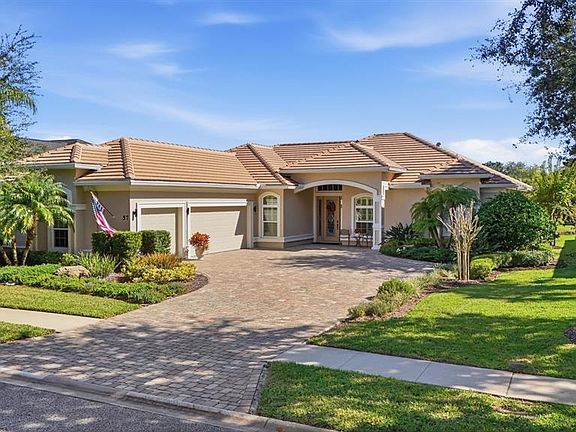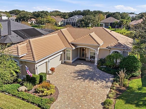 This exceptional home offers it all — views, privacy, and a prime location. The home features a spacious great room that flows effortlessly into the kitchen and dining areas, ideal for both entertaining and everyday living. Nearly every room overlooks the water, bringing natural beauty indoors. The bedrooms are arranged in a split floor plan for added privacy, and the home has been lovingly cared for with numerous thoughtful upgrades throughout. You’ll appreciate the 12-foot ceilings with elegant crown molding and coffered details. The kitchen boasts 42-inch cabinets, granite countertops, a separate island, and a walk-in pantry — a dream for anyone who enjoys cooking and gathering with friends and family. You will enjoy the money saving features that come with having a well for irrigation water and the impact windows with both insurance and electric bills. Additional highlights include custom window treatments, a dedicated office space, and a 3-car garage. The end result is your opportunity to own a truly beautiful, sensational home. Schedule your private showing today and experience it for yourself!