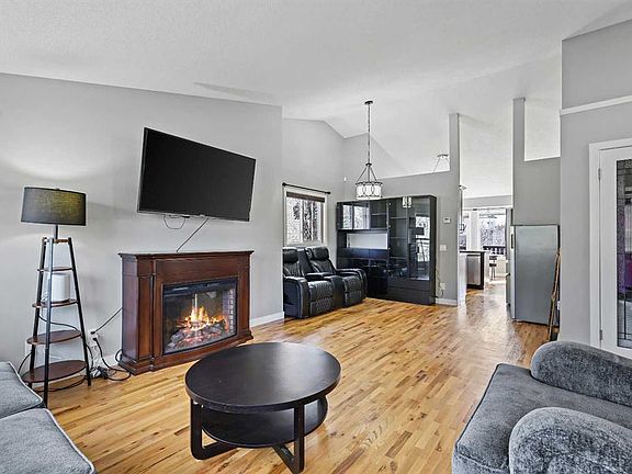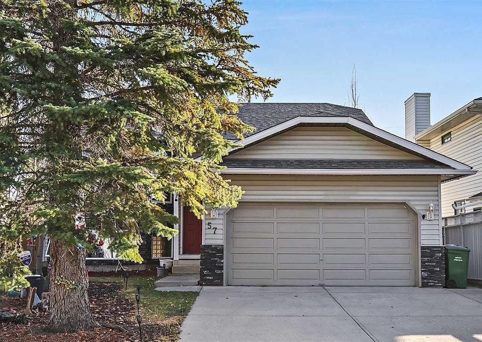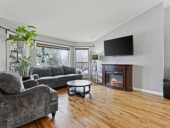 Welcome home! This inviting bi-level walkout home combines warmth, style, and thoughtful upgrades and nicely nestled on a huge treed lot with direct access to peaceful green space right out your back door! The open-concept main level features soaring ceilings that fill the living and dining areas with natural light and the beauty of real hardwood floors add warmth and timeless charm throughout. The updated kitchen showcases maple cabinetry, granite countertops, and brand-new stainless steel appliances, offering both beauty and functionality. Two spacious bedrooms on the main level (easily converted back to three) plus two full bathrooms provide flexibility and comfort for family or guests. The bright walkout lower level features in-floor heating, wide-plank luxury vinyl flooring, a large recreation room with cozy gas fireplace, a third bedroom, a den, laundry and a stylish 3-piece bathroom — ideal for additional living space, guests, or a home office. Step outside to enjoy a rubberized exterior deck, permanent exterior decorative lighting, large shed and a sunny south-facing yard with landscaped grounds accented by stonework and Rundle Rock detailing. Major features include newer shingles + leaf filter system, updated windows, furnaces, HWT and water softener …. all providing peace of mind and lasting value. An oversized garage completes this exceptional property. Backing onto miles of walking paths and open space, this home offers the perfect blend of comfort, quality, and a location that is close to everything that matters.