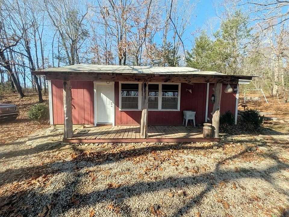 Looking for privacy & seclusion in a convenient location not too far out? Here's a small home or hunting cabin tucked away on 5.22 secluded acres offering the perfect blend of privacy, comfort, and convenience. Just minutes from the Buffalo National River, it features an open floor plan, a metal roof, and easy access via approximately one mile of well-maintained dirt road. Surrounded by the natural beauty of the Ozark Mountains, this property is ideal for a plethora of nearby outdoor activities such as hiking, hunting, floating, fishing, rock climbing, horseback riding, biking, ATV riding, photography or simply enjoying peace and quiet in the woods. Property can be sold fully furnished or it can be emptied prior to closing. All #s are approx, square footage per Assessor. Buyer to verify existence of all utilities.