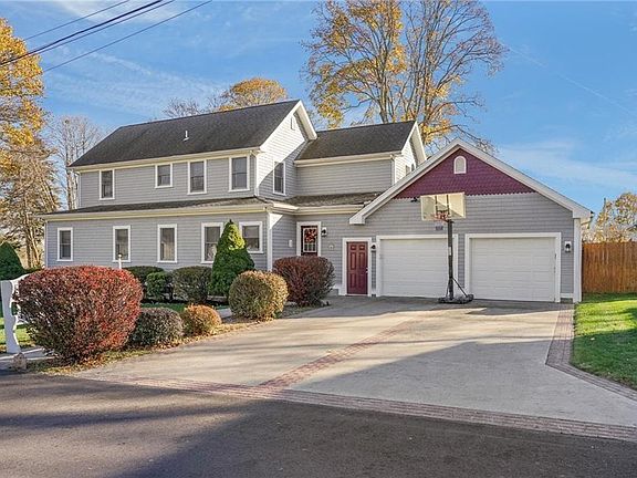 Welcome to 57 Ocean Ave, a very spacious and updated home located in a quiet, bayside community! This home was completely rebuilt and remodeled in 2003. There's plenty of space with its 21'x 30' living room with gas fireplace and wall of bookshelves and cabinets. The large formal dining room has hardwoods and cabinetry with sink and lighting. There's also a dining area with hardwoods. The applianced kitchen has granite counters, 2 sinks, and plenty of cabinet and counter space. Upstairs, the primary suite has a full bath with shower and soaking tub, walk-in closet, and corner gas fireplace! There's also a private balcony with views of the bay. Washer & dryer are located on the 2nd floor for convenience, along with two additional bedrooms and a full bath. The mostly finished lower level provides additional space with a rec room and exercise room. A Geothermal system provides affordable heating and cooling, and domestic hot water is heated by gas, and the home has central vac. An irrigation system keeps the lawn healthy. There is a fenced section of the yard, attached two car garage, and the walkway and drive are stamped concrete. Walk to the water, or Rocky Point which is a mile away! You won't be disappointed with this well-maintained home!