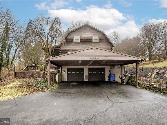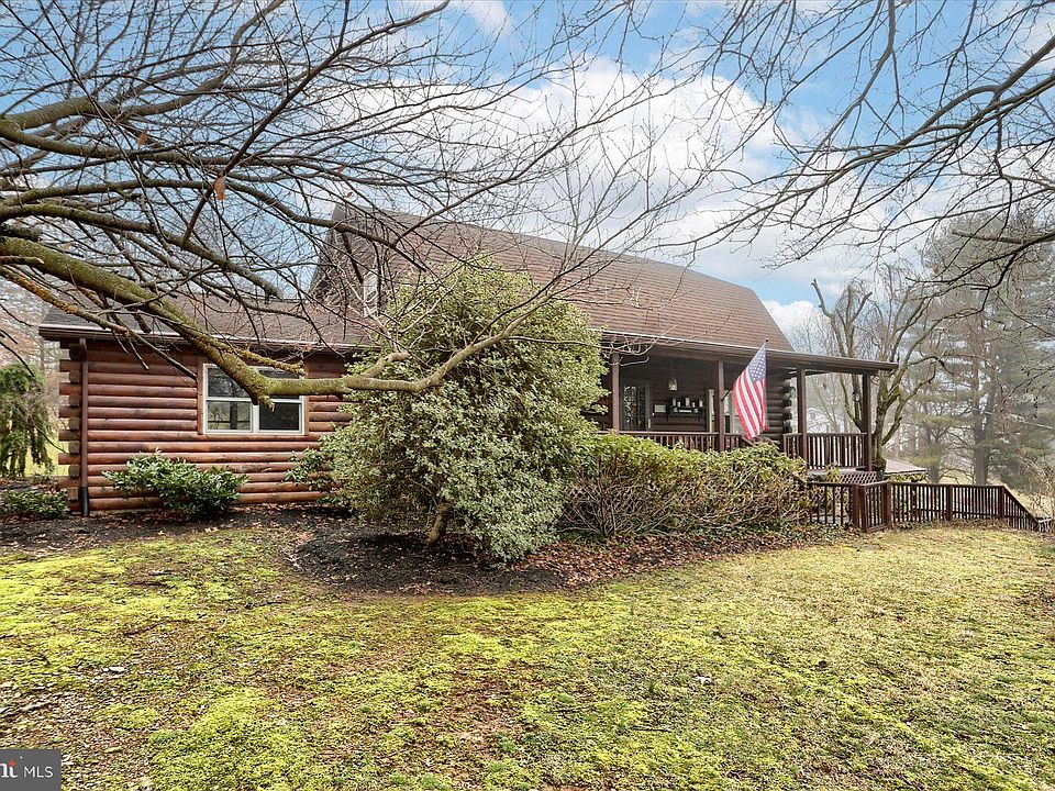 Welcome to the warmth and charm of this solidly built log home with the dreamiest of porches nestled on 1 acre in Lower Dauphin School District only minutes to Hershey and Harrisburg.  This cozy home has so much to offer for fun and entertaining with its impressive main level 18x22 family/game room featuring a soaring wooden cathedral ceiling, complete with a pool table, poker/game table, bar area w/seating and a tranquil outdoor rear covered flagstone patio complete with a peaceful pondless waterfall feature, enhancing the natural beauty of the surroundings.  There is also a separate building with a hot tub (as is) for future enjoyment! This home features wood plank floors (some covered with carpeting), beamed ceilings, both cathedral and vaulted throughout.  The open floor plan with the kitchen having an abundance of counterspace and room for a table is adjacent to a cozy sitting/dining area, where a wood stove radiates warmth and ambiance.  There is a separate living room with beamed ceiling and also a main level bedroom that provides flexibility and ease of living. Ascend to the second floor loft, where relaxation awaits in the sauna (as is), and overlooks the sitting/dining area below. Two additional bedrooms, both with vaulted wood ceilings, provide comfort and privacy, with one featuring a charming loft area above. Outside, a two-car integral garage (within the unfinished basement area) and a two-car carport with a metal roof offer ample parking and storage space. Situated on a hilltop overlooking Hershey, you can enjoy the spectacle of fireworks during holidays! Don't miss this rare opportunity to own a unique log home where memories are made and cherished for years to come. Schedule your private showing today.