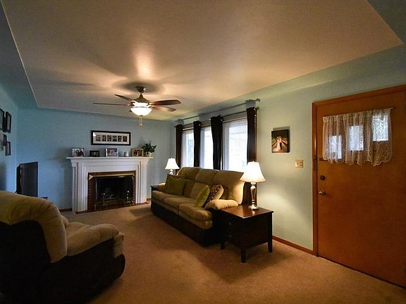 Adorable 2 bedroom brick ranch in a desirable neighborhood is move in ready. You'll love the covered front porch to relax, entertain or greet your guests. The living room boasts a gas fireplace, big picture window and beautiful cove ceiling. The large dining room supplies plenty of room for your family and guests. The updated kitchen has eye catching back splash and beautiful flooring. A full basement with a full bath also has a second kitchen to help with holiday or every day cooking, baking or canning. The enclosed back patio opens up off the single car garage. Come view this home today.