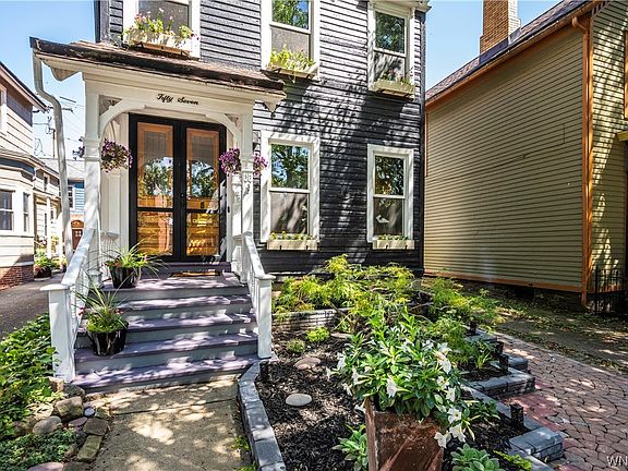 Beautifully updated Victorian on a wonderfully tree-lined street in Allentown. This 2,400+ sqft 3 bedroom, 2 bath home features new hardwood floors & Anderson windows throughout, double living room w/wall unit, dining room w/custom-built glass-faced cabinetry, 2 Eastlake marble fireplaces w/gas inserts, beautifully updated eat-in kitchen w/quartz countertops, tile backsplash & high-end Samsung stainless-steel appliances, new bath w/walk-in shower, sm office, 1st flr laundry w/front loading washer/dryer, & rebuilt mudrm off back garden. 2nd flr has a primary bdrm w/sitting alcove (7x6) & lg closet, 2 other generously sized bdrms, lrg walk-in closet w/organizers, and a spa-like full bath w/stone tub, floating vanity, & walk-in shower. Other features include full walk-up attic, hi-efficiency furnace w/new central air (2021), new water-softner & filtration system, Nest thermostat, updated electric & all-new plumbing, covered deck off the dining room, fully fenced in yard w/covered patio, fresh landscaping, one-car garage w/electric opener plus parking for 2+ other cars. Walk to Kleinhans, medical corridor, or up the street to restaurants & shopping. Professionally measured 2424 sqft.