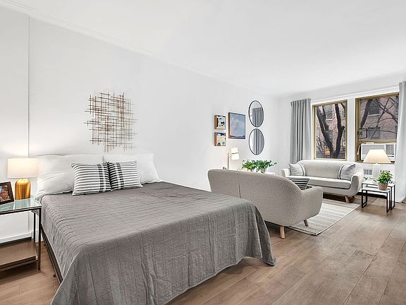 Origin Park Terrace West #2F is a south facing studio home featuring the highest upgrades in all aspects. From the moment you enter, you will be greeted by pre-war details that set the stage in this turn key home. The residence premium upgrades include Oceanfront Birch engineered wood flooring, flush mount Hampton Bay Flaxmere overhead lighting fixtures, interior solid core single panel doors by Brosco with hardware by Yale and 6" base moldings.